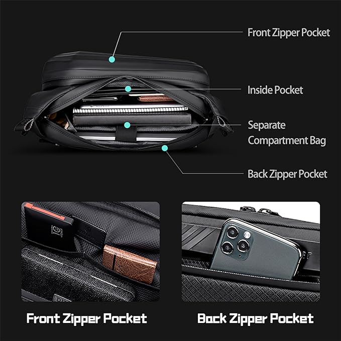 جیب مخفی ضد سرقت: طراحی ایمن و حرفهای با یک جیب مخفی در قسمت پشتی که مخصوص نگهداری اشیای قیمتی مانند پاسپورت، تلفن همراه و پول نقد است.