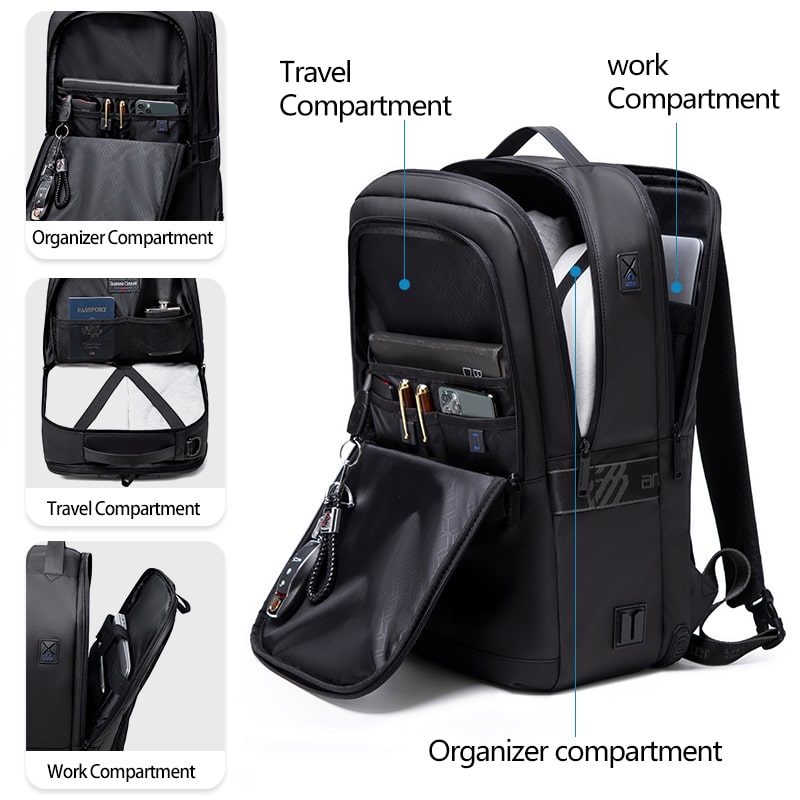 این مدل دارای ۳ محفظه اصلی بزرگ و ۱۲ جیب چندمنظوره است. جیبهایی برای موبایل، خودکار، کارت، کابل و لوازم جانبی که همگی به مرتب بودن وسایل شما کمک میکنند.