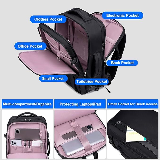 - محفظه اختصاصی لپتاپ، جیبهای متعدد و بندهای راحت پشت