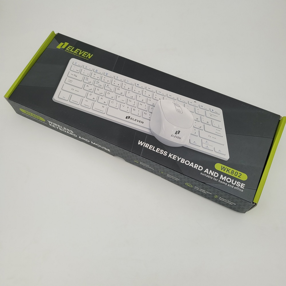 ست کیبورد و ماوس Eleven مدل WK802 یک مجموعه کاربردی و اقتصادی است که هم برای کاربری روزمره و اداری و هم برای استفاده خانگی گزینهای مناسب محسوب میشود. کیبورد این ست با طراحی ارگونومیک و کلیدهای نرم، تایپ راحت و بدون خستگی را فراهم میکند. در کنار آن، ماوس همراه این مجموعه با حسگر اپتیکال دقیق و دقت 1600 DPI تجربهای روان و سریع در کار با کامپیوتر ارائه میدهد. طراحی ساده، اما شیک و اتصال سیمی پایدار از طریق USB، استفاده آسان و بدون قطعی را تضمین میکند.