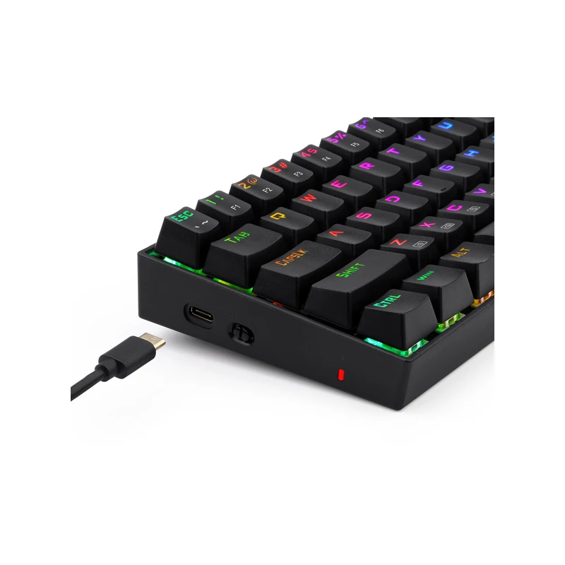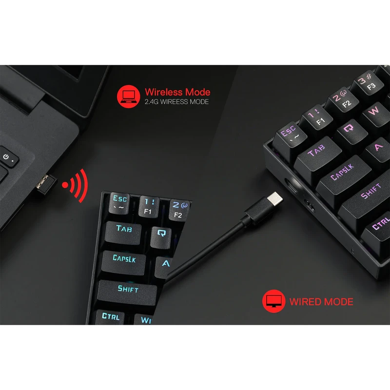 کیبورد Redragon K599 Deimos با قابلیت اتصال دوگانه (سیمی و بی‌سیم) عرضه شده است؛ به این معنا که می‌توانید از طریق دانگل USB 2.4GHz یا کابل USB Type-C آن را به سیستم خود متصل کنید. این قابلیت به کاربران آزادی عمل بیشتری می‌دهد و آن را برای استفاده در محیط‌های مختلف، از جمله بازی‌های رقابتی یا کارهای روزمره، ایده‌آل می‌سازد.