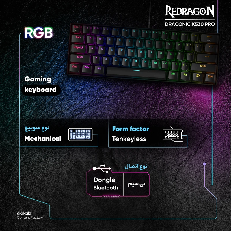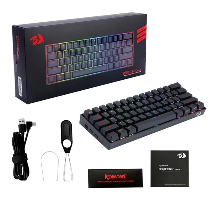 کیبورد گیمینگ Redragon Draconic K530 PRO یک کیبورد مکانیکی جمعوجور و قدرتمند است که برای گیمرها و کاربران حرفهای طراحی شده. این مدل با فرم فاکتور ۶۰٪ (۶۱ کلید)، فضای بیشتری روی میز شما آزاد میکند و امکان حرکت آزادانه موس را فراهم میسازد.