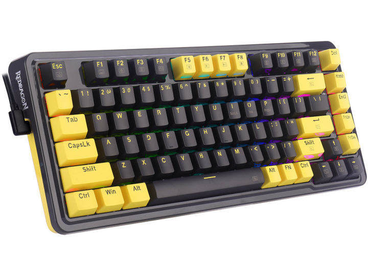 نورپردازی RGB با افکتهای متنوع، ساختاری شفاف (بسته به نسخه) و امکان تنظیم شدت و سرعت افکتها، جلوهای حرفهای به میز کار شما میدهد. فرمفاکتور تقریباً ۷۸ ٪ این مدل با حذف بخش عددی (numpad) و حفظ کلیدهای عملکردی مهم، فضای حرکتی بیشتری برای ماوس فراهم میآورد — مناسب برای گیمرهایی که فضای میز محدود دارند.