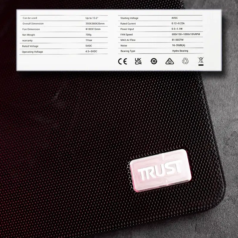 محصولات برند Trust همواره به کیفیت بالا و طول عمر طولانی شناخته میشوند. پایه خنککننده لپتاپ TPAD-1 نیز از این قاعده مستثنی نیست و با استفاده از متریالهای مقاوم، ماندگاری و اطمینان خاطر را برای شما به ارمغان میآورد.